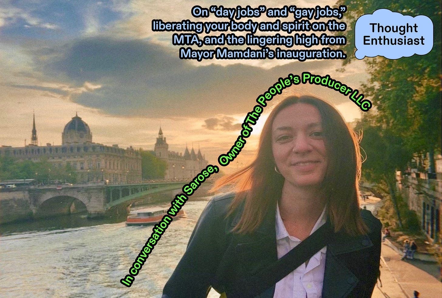 On "day jobs" and "gay jobs," liberating your body and spirit on the MTA, and the lingering high from Mayor Mamdani's inauguration.