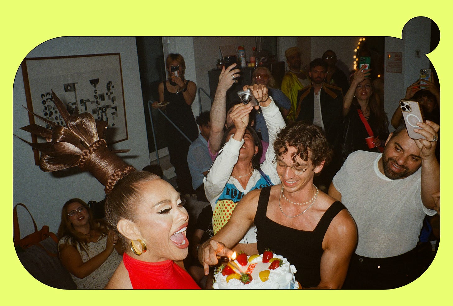 Dream guest list includes creatives and musicians who inspire me: Debbie Harry, Seth Bogart, Honey Dijon. Also all my friends and lovers on the list always—there’s plenty of room at the function.